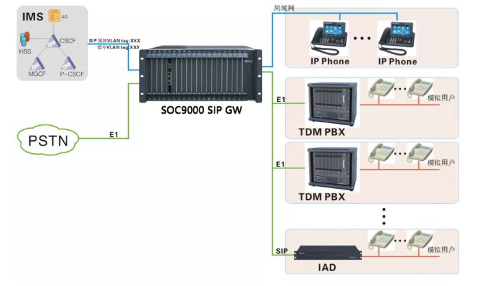 SOC9000 SIP GW作為IMS用戶接入層設(shè)備,采用模塊化、分布式多處理機架構(gòu),全數(shù)字時隙無阻塞交換方式,承載語音、數(shù)據(jù)和多媒體業(yè)務(wù),具有電信級QoS的新一代SIP GW。SIP GW支持在不中斷通信的情況下,帶電進行線路板的插拔操作;在系統(tǒng)業(yè)務(wù)量過大時,可通過多級過載門限調(diào)控業(yè)務(wù)量,以降低系統(tǒng)負荷。SOC9000 SIP GW將用戶的數(shù)據(jù)和語音等應(yīng)用接入到分組交換網(wǎng)絡(luò)中,實現(xiàn)IMS網(wǎng)絡(luò)接入,為分組域接入的固定和移動用戶提供各種IP多媒體業(yè)務(wù),如VoIP、IP Centrex、彩鈴/彩振、IM、多媒體會議等,幫助全國運營商成功面對網(wǎng)絡(luò)轉(zhuǎn)型的挑戰(zhàn)。