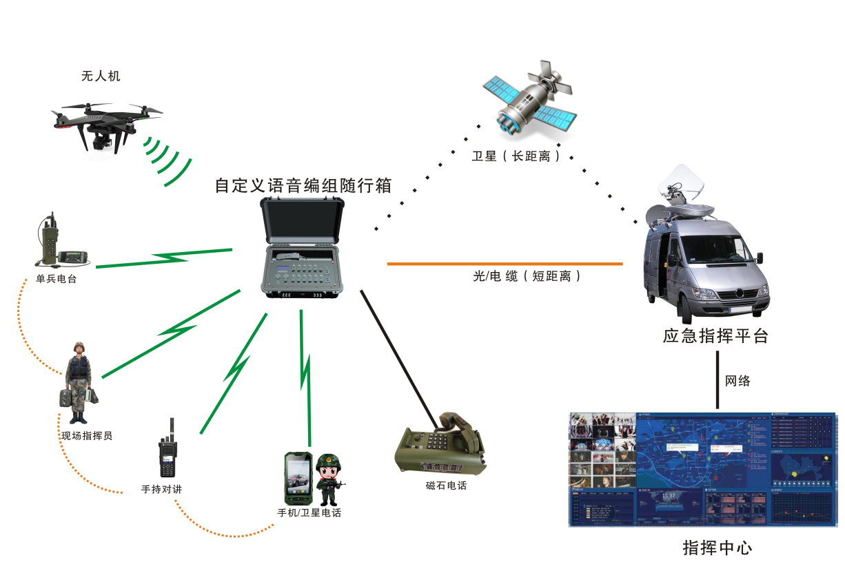 ●350M對講機、公網(wǎng)集群對講機、公專融合智能對講機、遠(yuǎn)程語音通信電臺、衛(wèi)星電話、超短波對講機、短波電臺、手機、固定電話、衛(wèi)星電話、網(wǎng)絡(luò)電話、磁石電話、功放喇叭等混合方式接入。