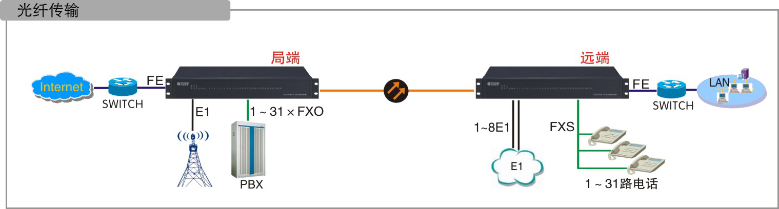 數(shù)據(jù)速率:n×64K或100M(光纖傳輸時(shí))